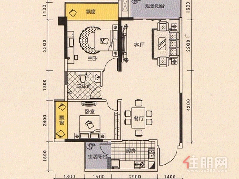 兴宁区望州路江宇世纪城2房70平米2200元/月