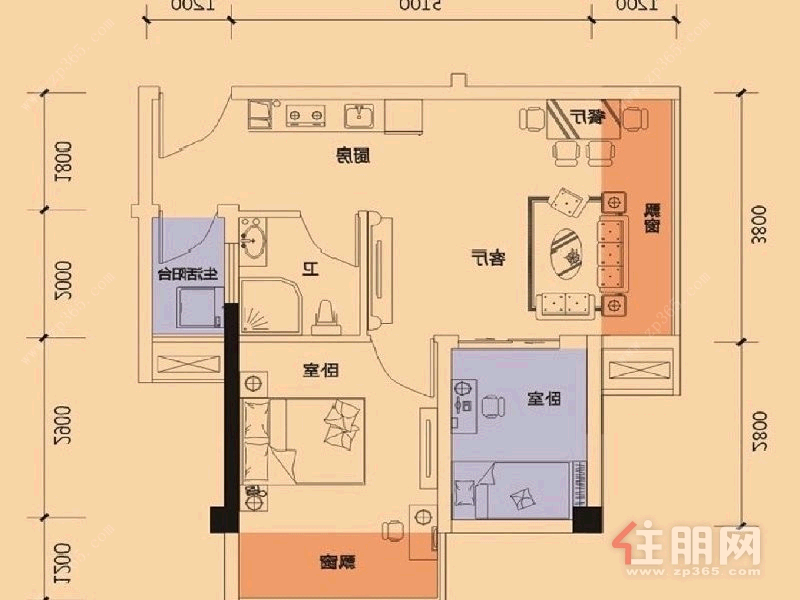 2房2厅0卫 52.0㎡