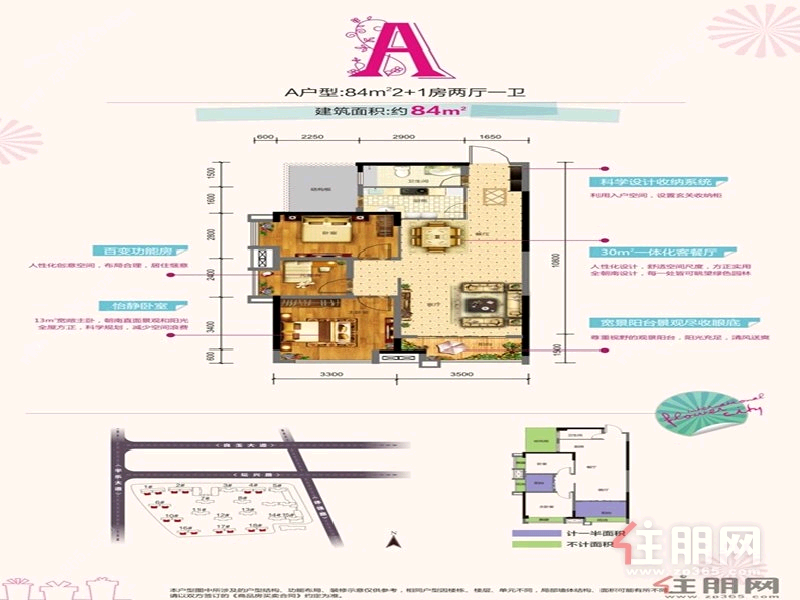 3房2厅0卫 84.0㎡3000.0元/月