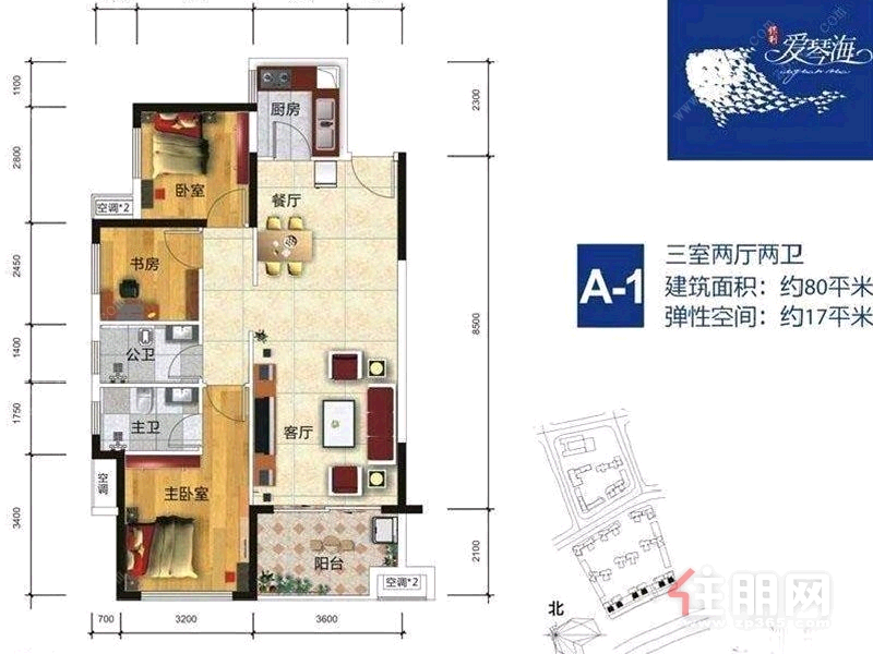 兴宁区秀厢大道保利爱琴海3房80平米99.8万