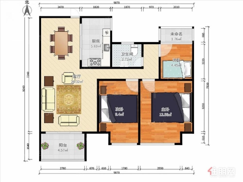 3房2厅0卫 91.0㎡3200.0元/月