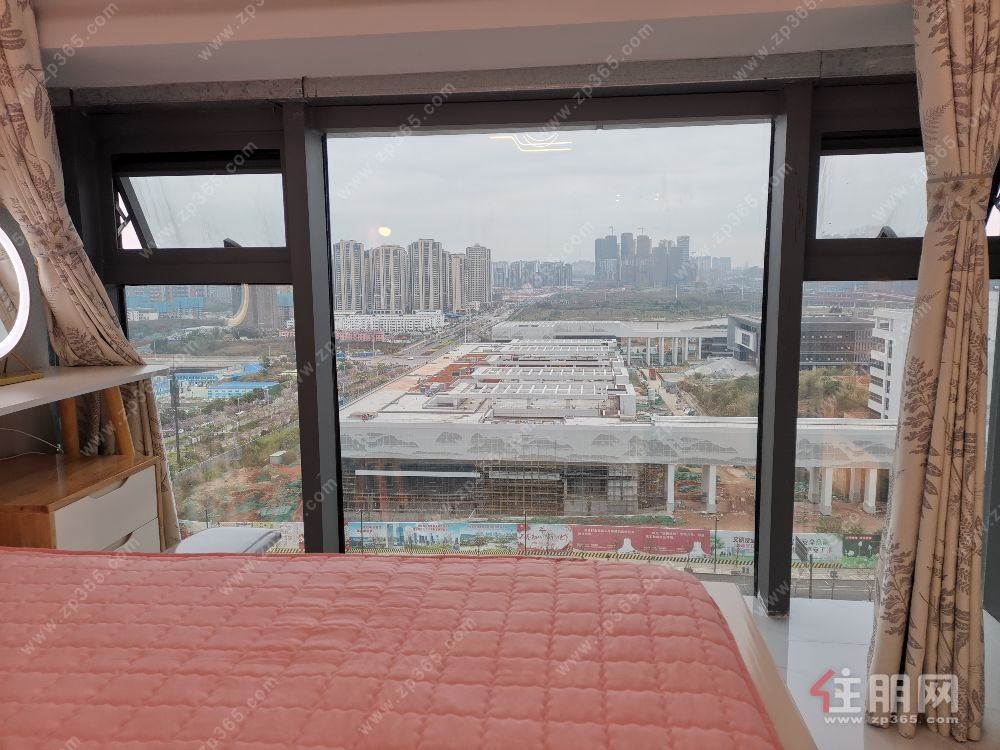 阳光城时代中心公寓楼,这一套是loft二楼的,空间设计合理,大衣柜、大储物柜、大鞋柜,还有一个储藏室。卧室可以直接看到五象湖