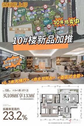 💥10# 楼新品 热卖中💥 🔥108㎡享133㎡ 大横厅双阳台🔥 🏡拓展率超23% 酒店式主卧🏡 ✨央企保利 北湖品质优选盘✨