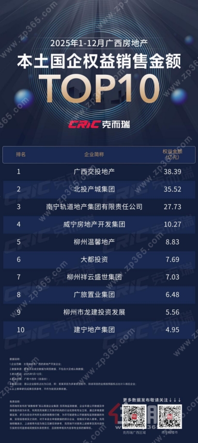 ·《2025年1-12月广西房地产本土国企权益销售金额***10》