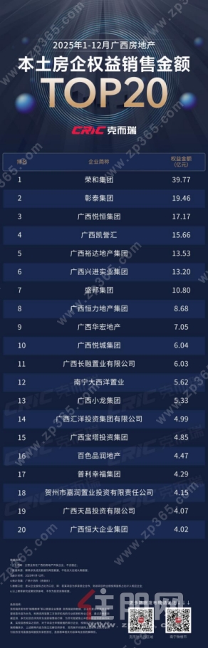 ·《2025年1-12月广西房地产本土房企权益销售金额***20》